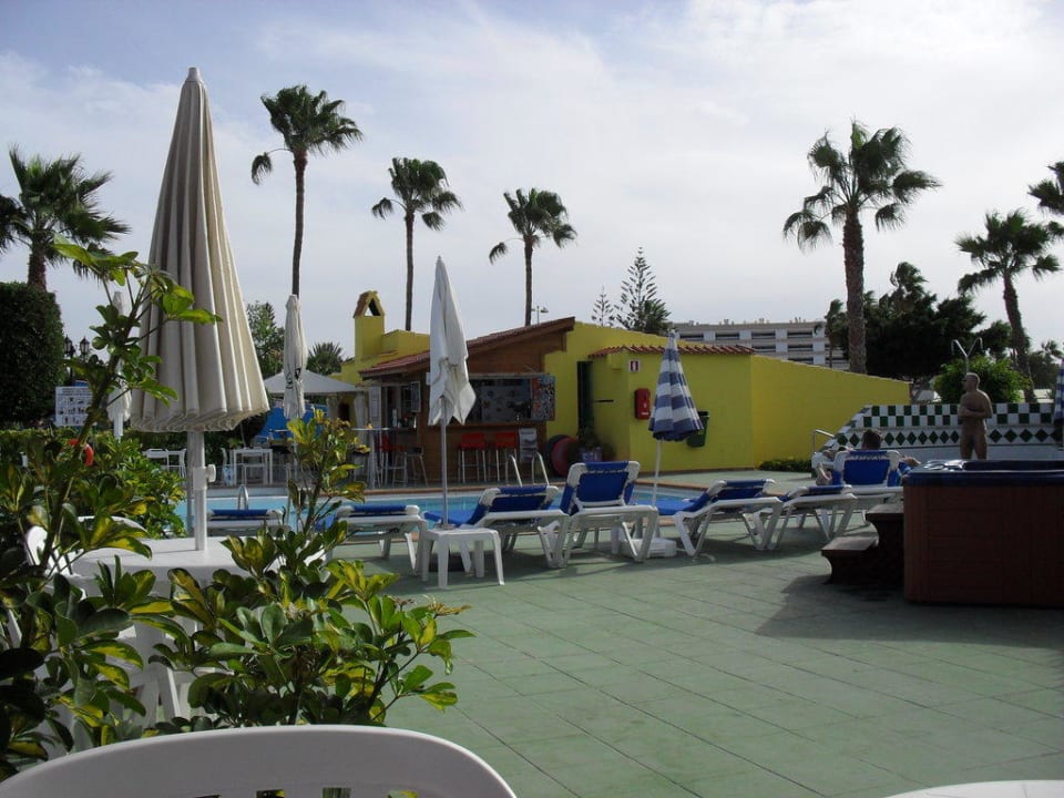 Blick von vor dem Studio auf den Pool
