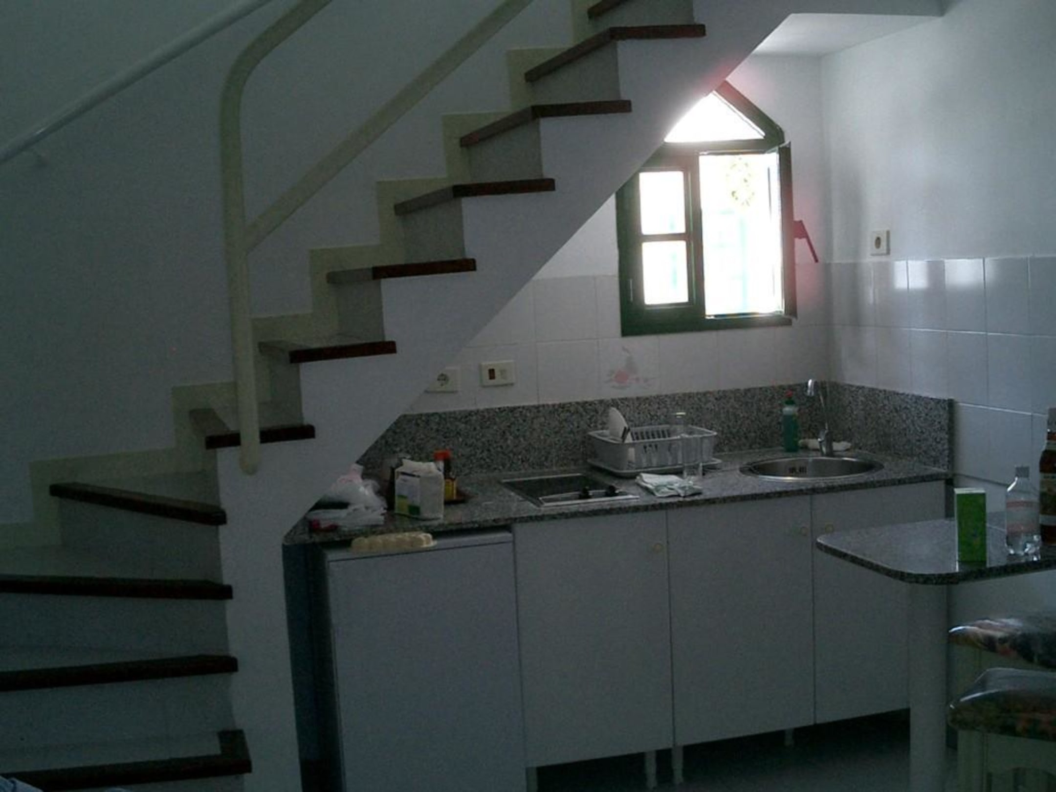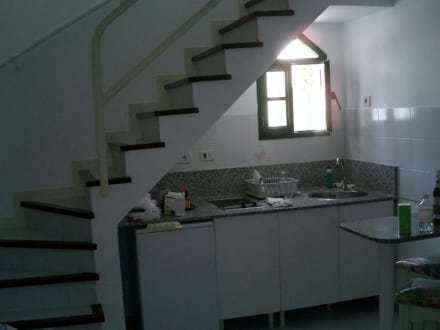 Küchenzeile und Aufgang zum Bad und Schlafraum