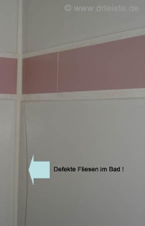 Defekte Fliesen im Bad des Zimmers