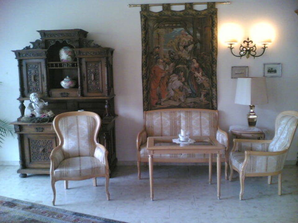 Stilvolles Möbel-Arrangement an der Rezeption.