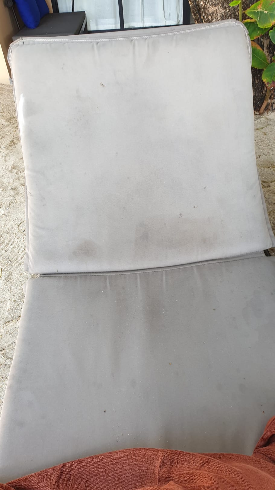 Dreckige Polster auf den Strandliegen, diese wurden wahrscheinlich jahrelang nicht mehr gereinigt.