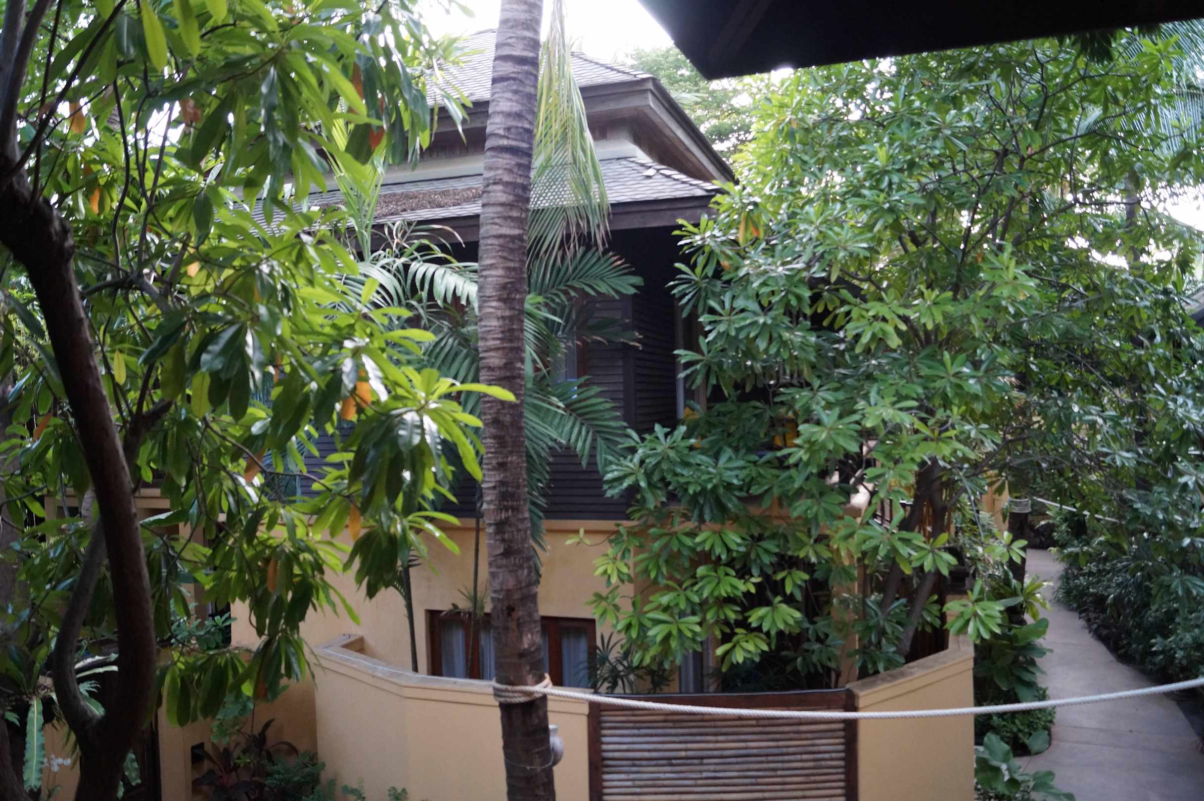 Der Ausblick in die schöne eingewachsene Hotelanlage.