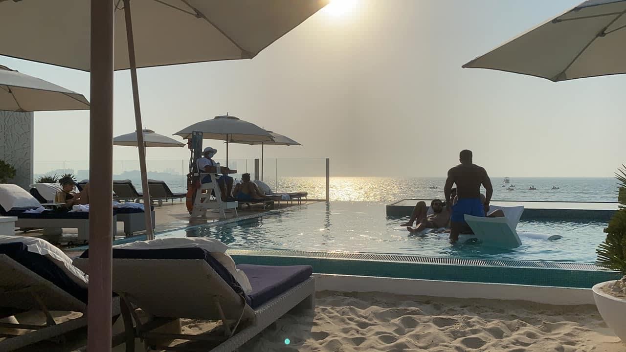 Sonnenuntergang in Dubai. Hier Privatpool des Burj Al Arab.