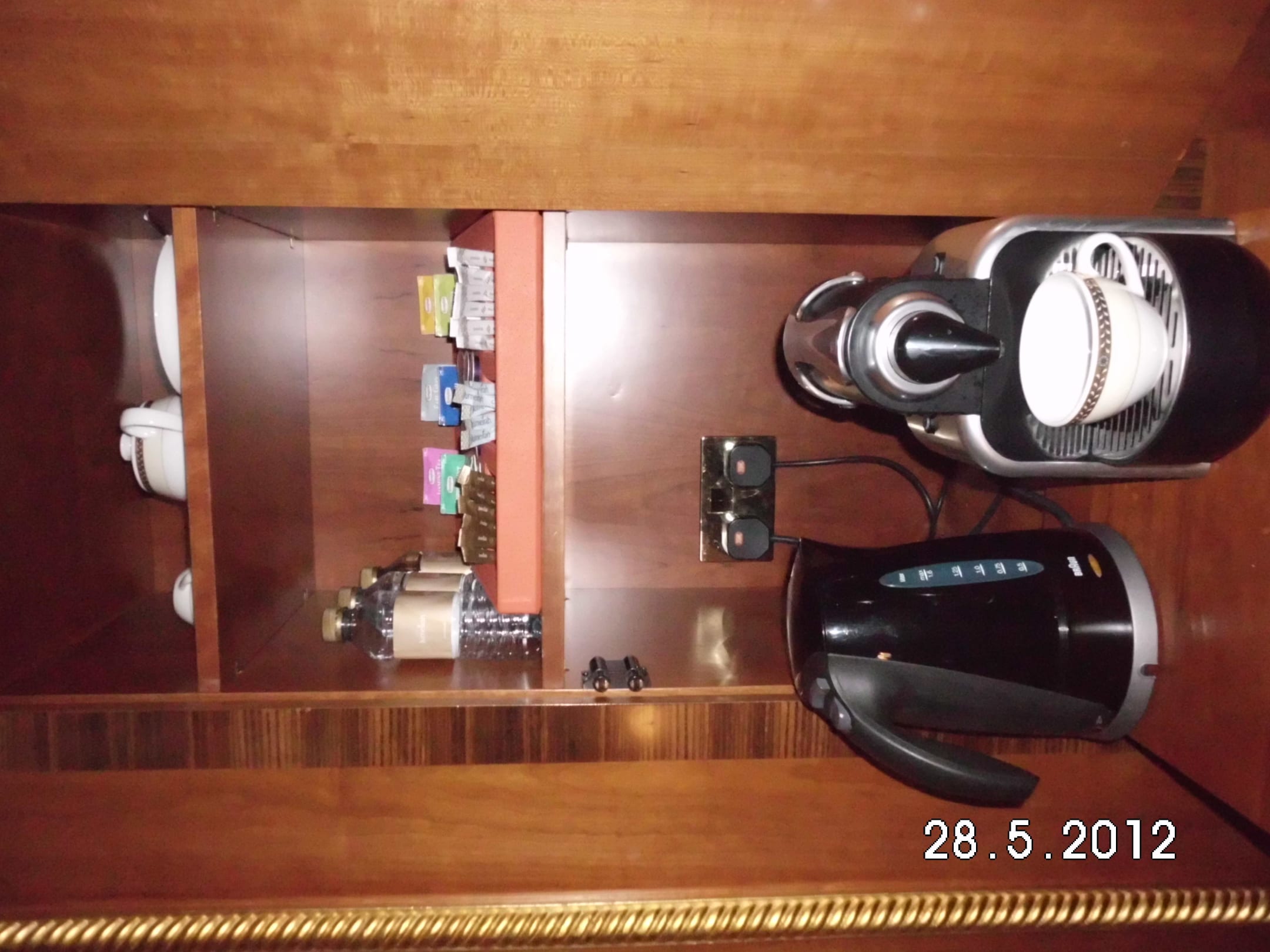 Tee/Kaffee ZubereitungDas Zubehör, also Zucker, Kaffeepads, Wasser zum erhitzen, Teebeutel... wurden täglich erneuert.