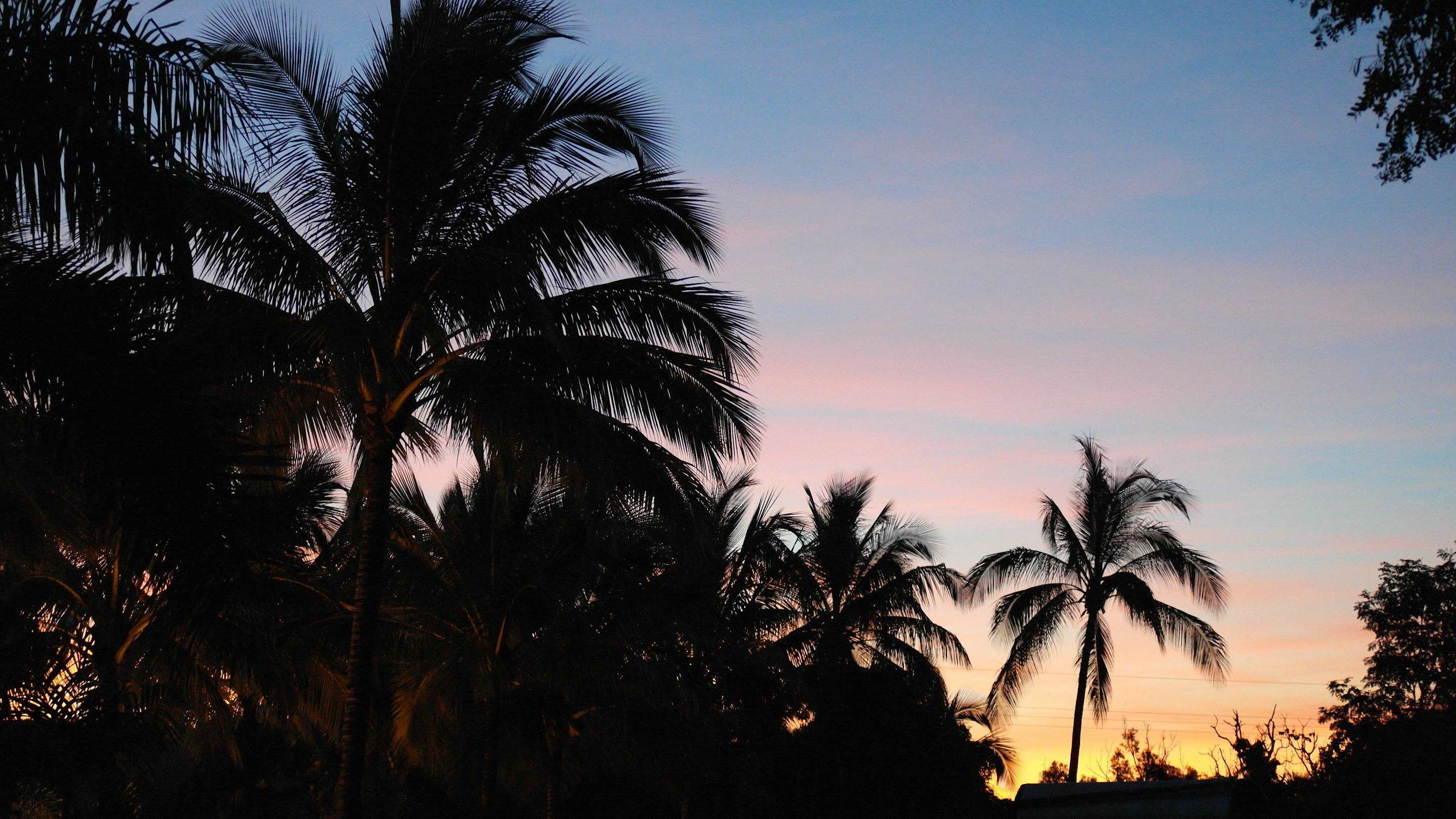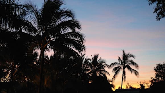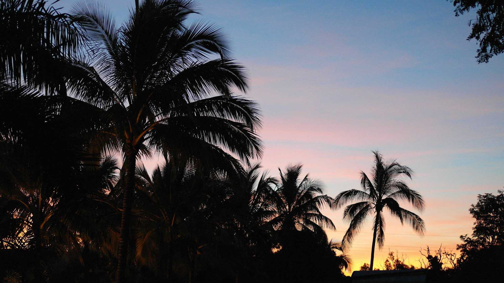 Sunset through coconut trees