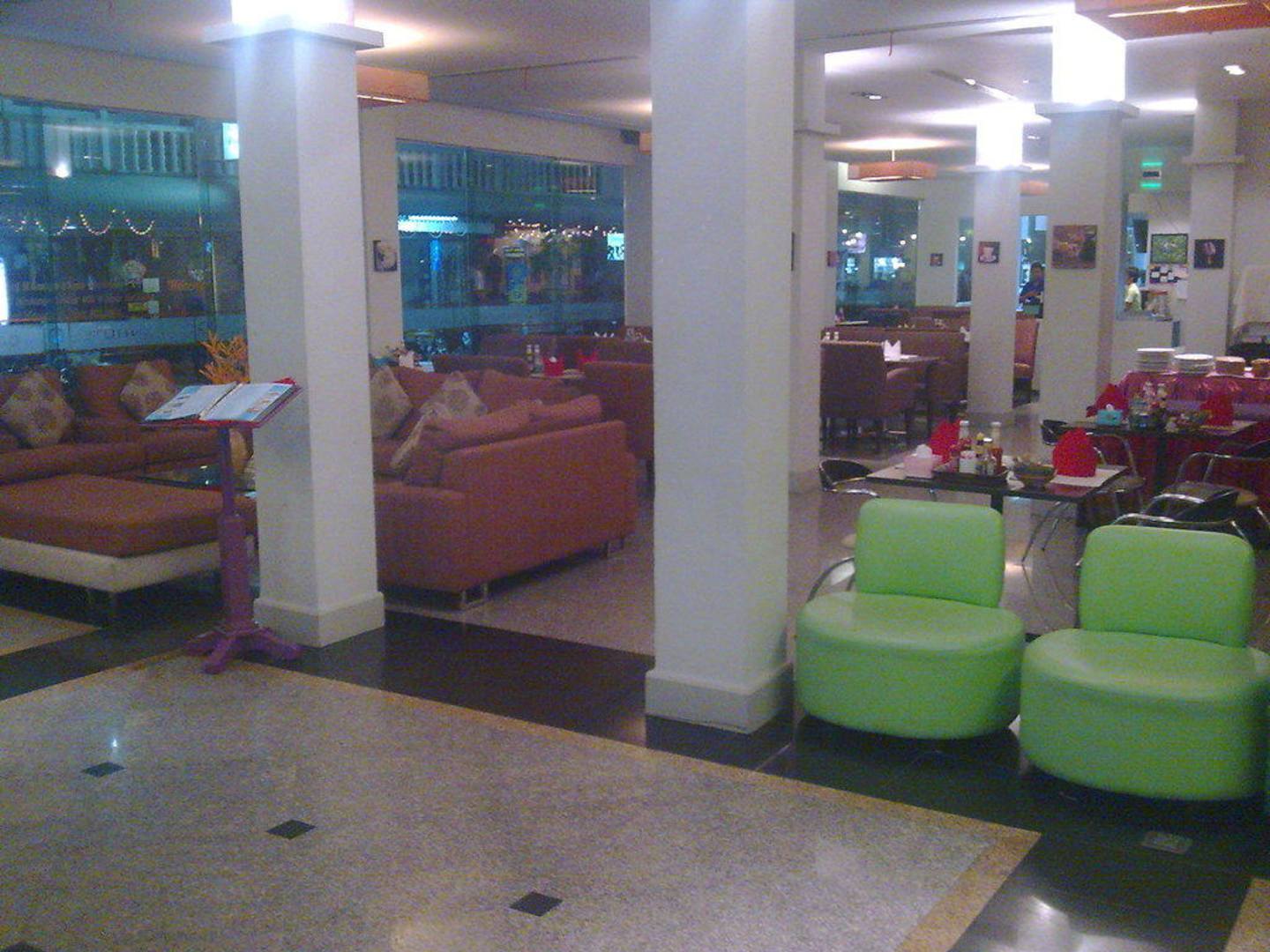 Blick von der Rezeption/ Treppe auf den Essbereich