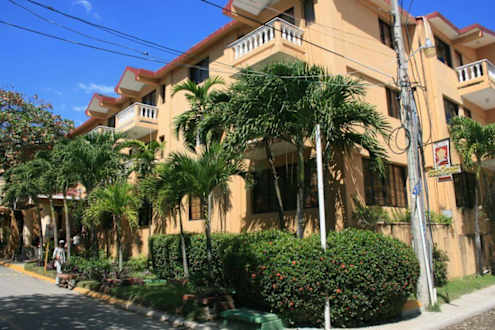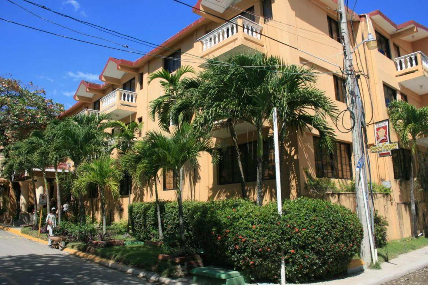 AussenaufnahmeAuf der linken Seite ist der Hoteleingang, die Straße (Sackgasse) rechts führt in Richtung Strand
