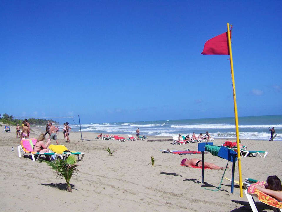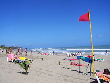 Strand immer mit hohen Wellen und Roter Fahne