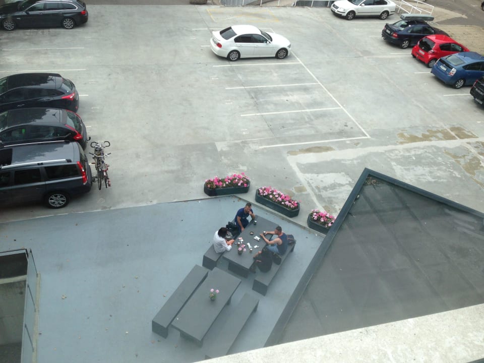 Blick nach unten- Rückseite Hotel