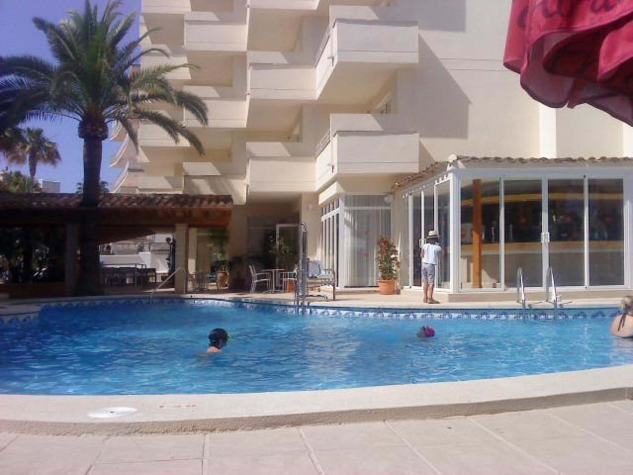 Pool mit Blick auf Bar im Haupthaus