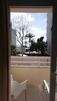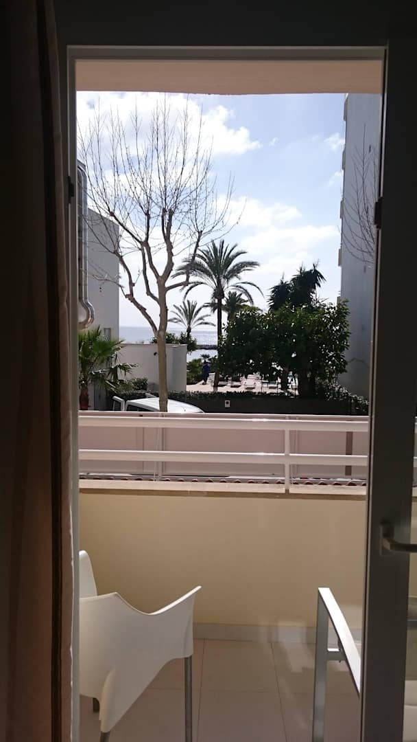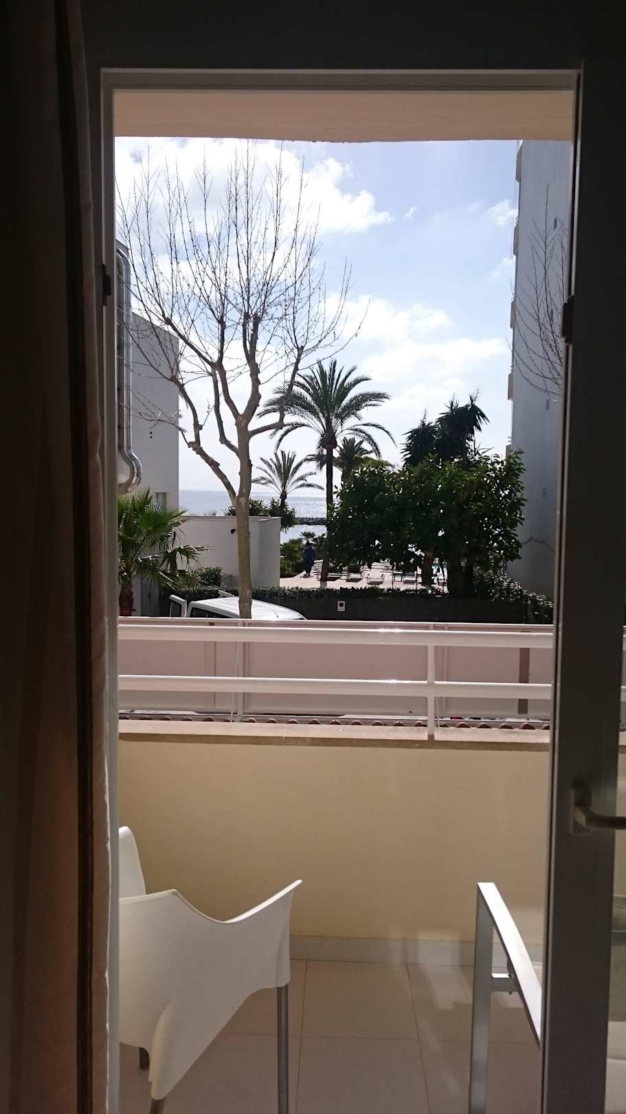 Ausblick vom Zimmer heraus auf Balkon