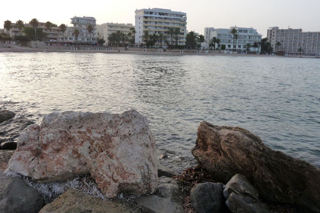 Strand und Hotel vom Meer aus gesehen