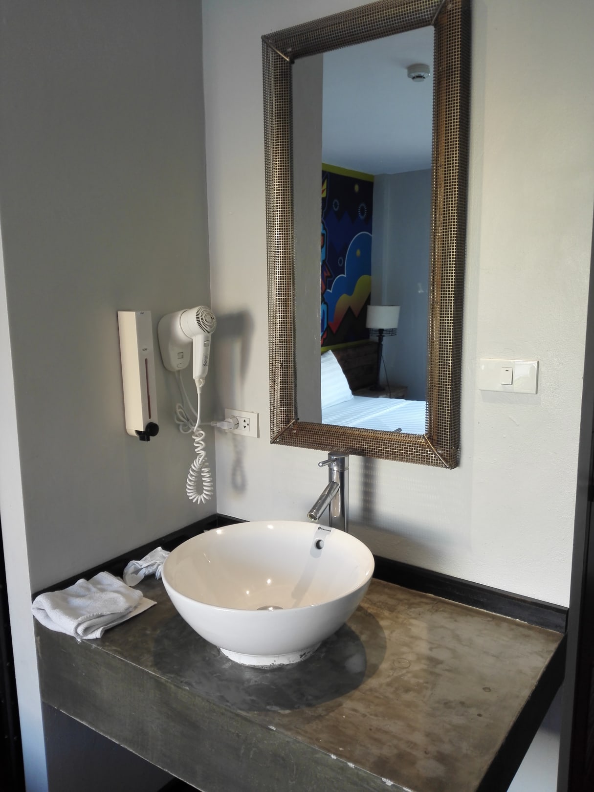 Waschbereich im Zimmer neben dem Bett