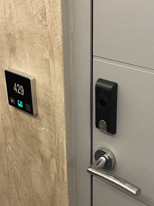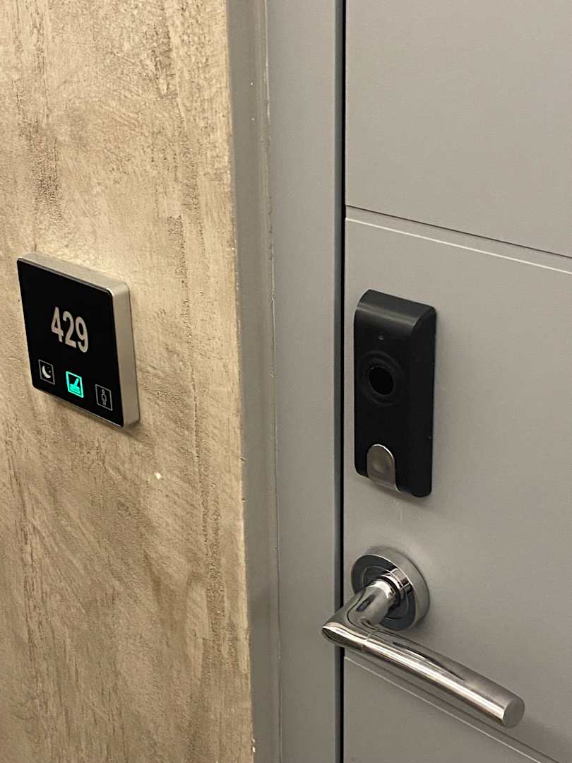 Zugang zum Zimmer mit Hinweis an die Reinigungskräfte