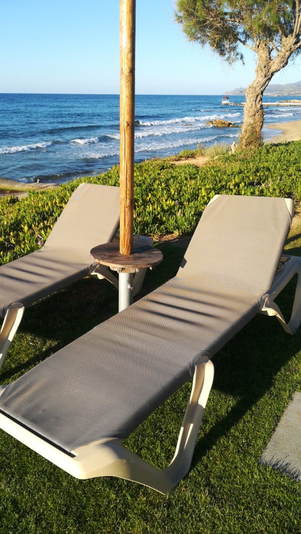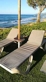 SonstigesTerrassen sind angelegt. 2 mit Rasen und ganz unten stehen die Liegen im Sand direkt am Strand. Allerdings sehr begrenzte Anzahl.
