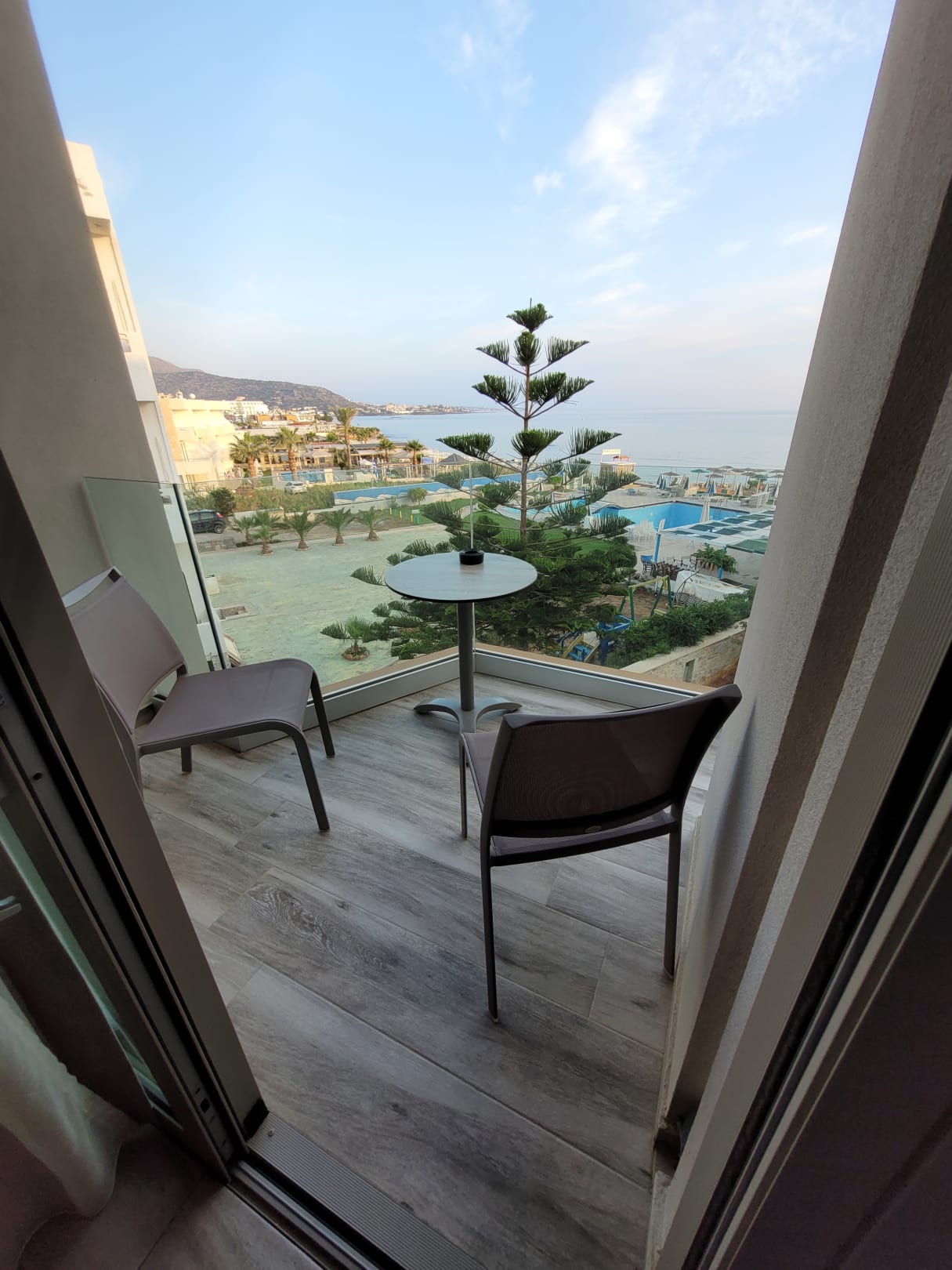 Balkon. Vom Bett sieht man das Meer