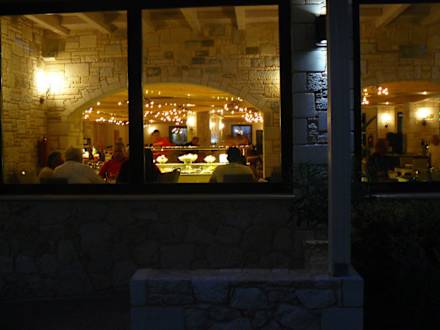 Blick von aussen in das abendliche Restaurant