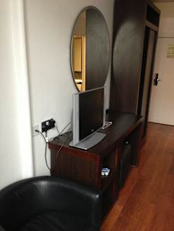 Sessel, Schreibtisch und Schrank auf dem Zimmer