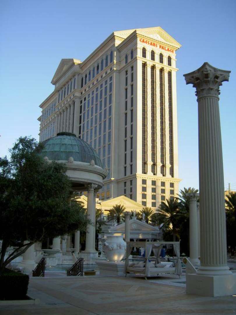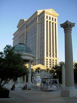 Hoteltrakt Cesars PalaceAußenansicht einer der Hoteltürme des Cesars Palace von der Poolanlage aus gesehen.
