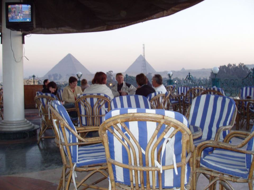Dachterrasse mit Blick auf die Pyramiden