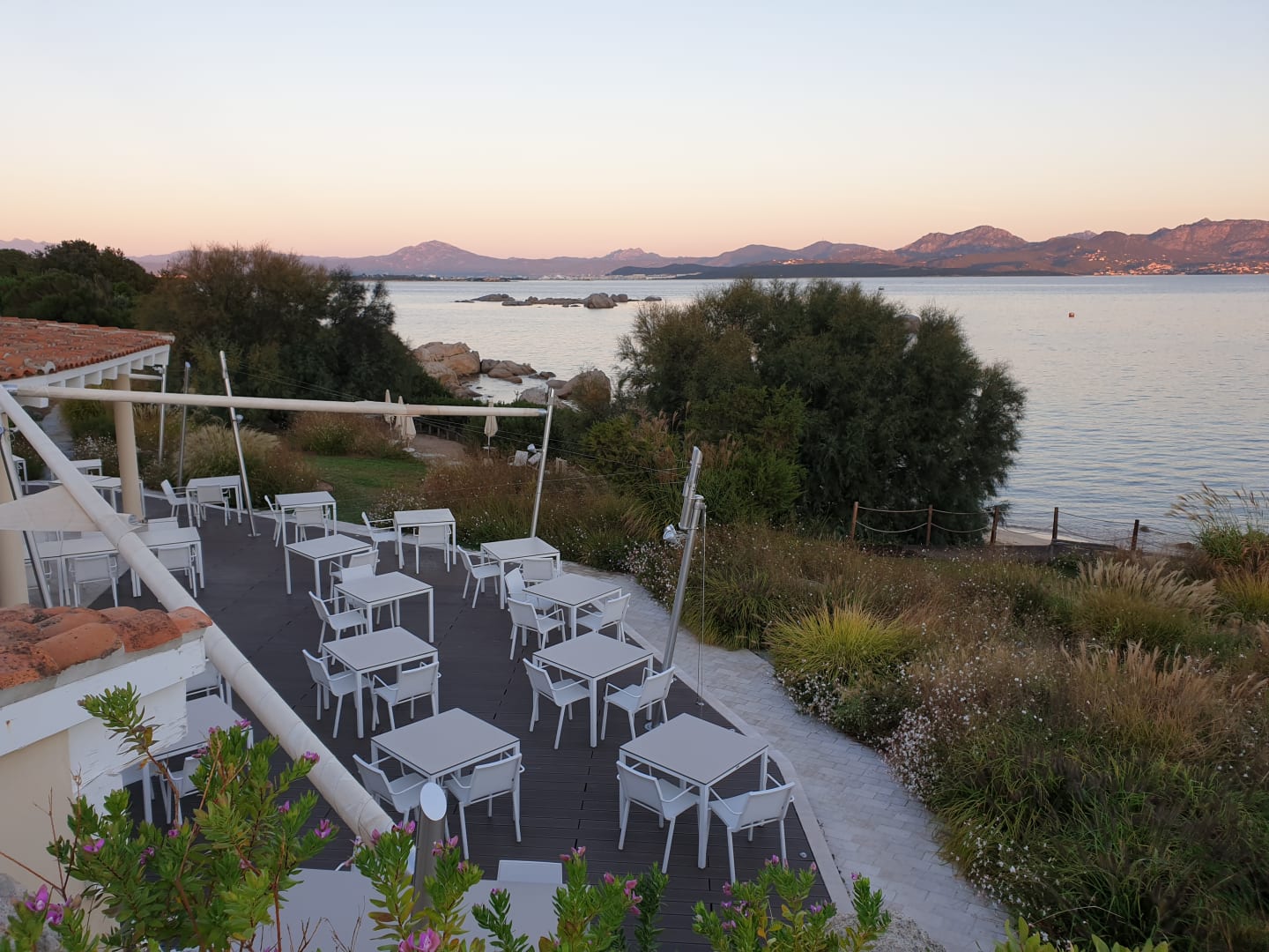 Terrasse des Restaurant am Abend