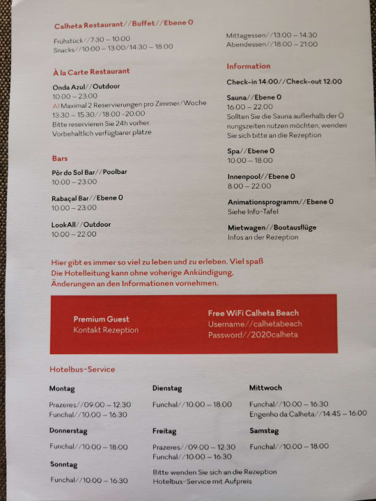 Schließzeiten der Restaurants und CheckIn