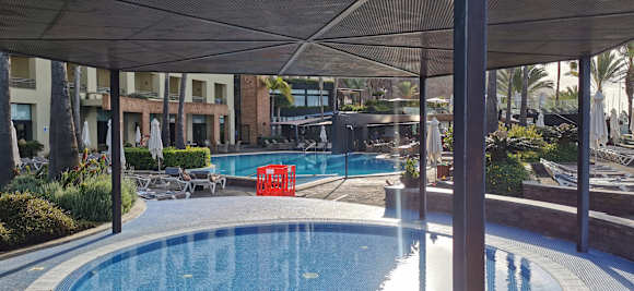 Blick vom Babypool auf den Hauptpool
