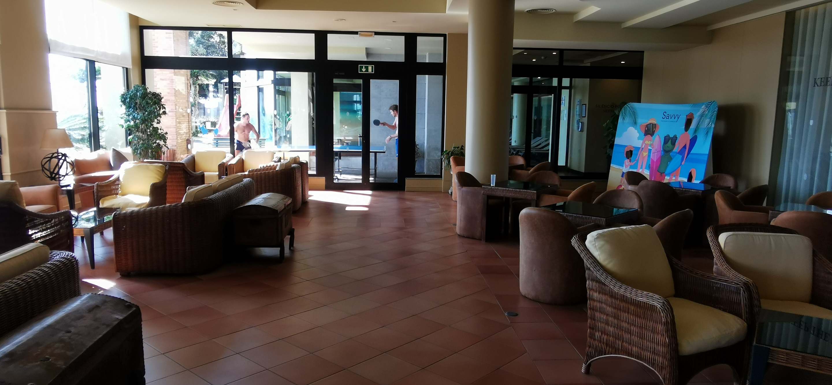 Aufenthaltsbereich zwischen Pool und ewig geschlossener Bar im EG