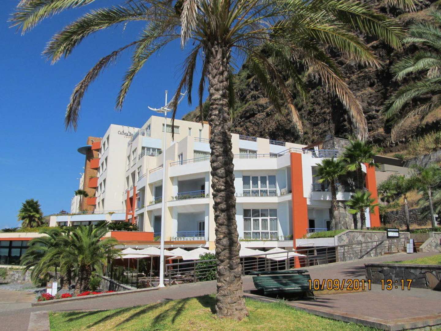 App.0219 - links neben der Palme im 2. mit dem blauen Geländer ist der Balkon, daneben rechts das Schlafzimmer