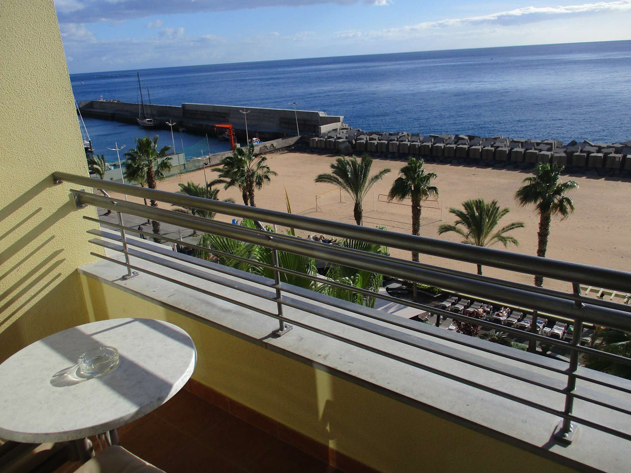 Ich buchte ein Topzimmer im Calheta Beach Hotel. Das befand sich ganz oben im 5. Stock. Es bot mir einen grandiosen Ausblick auf den Strand, der mit Sand aus Marokko aufgefüllt wurde, und den Atlantischen Ozean.