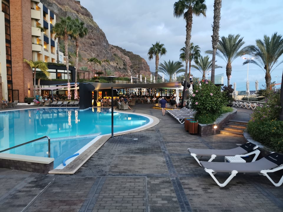 Die Poolanlage am Abend