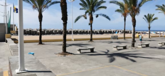 Vor dem Hotelrestaurant zum Strand