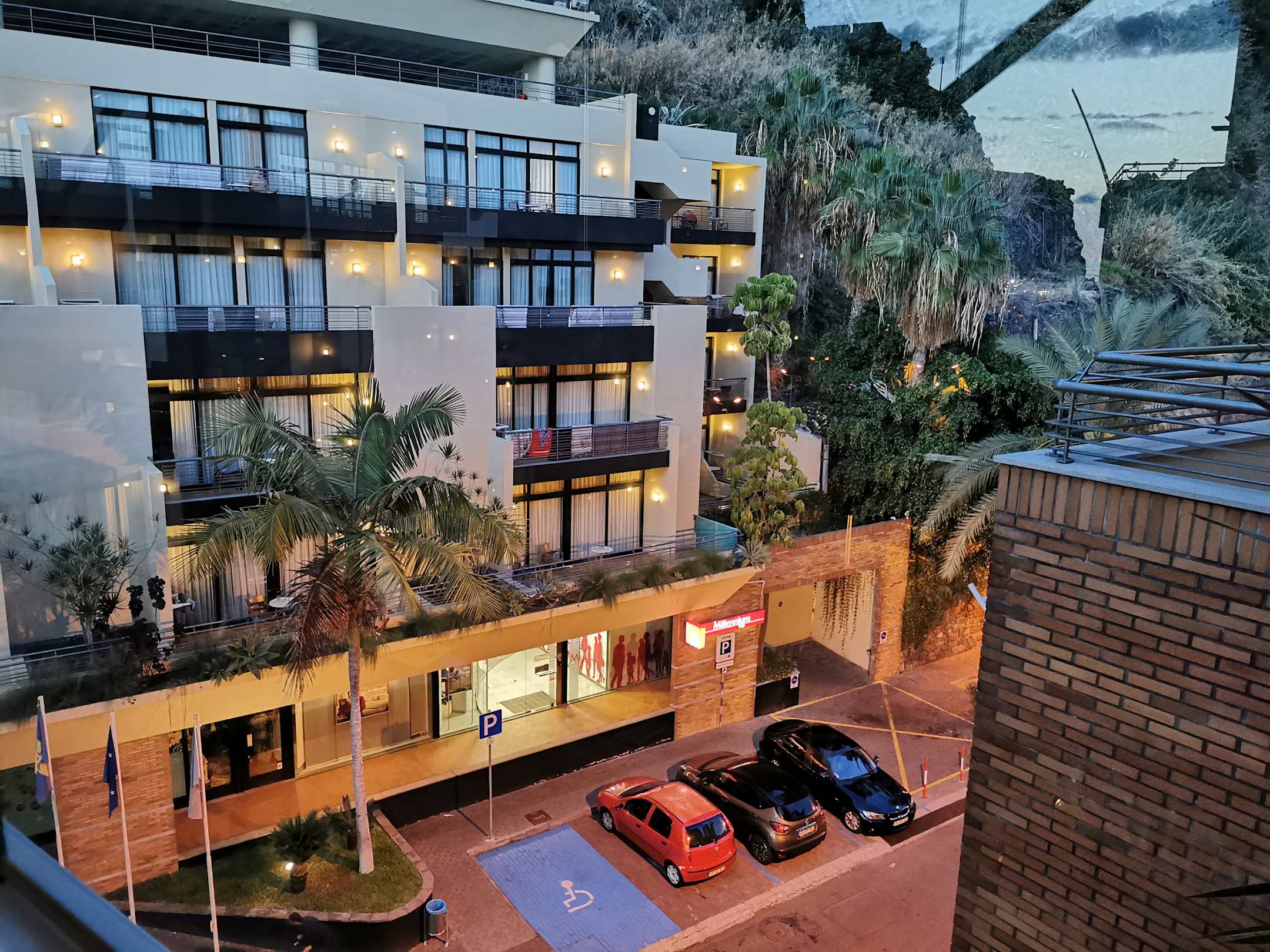 Ausblick am Abend vom Hotelübergang auf die Strasse
