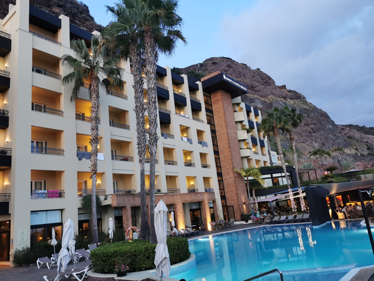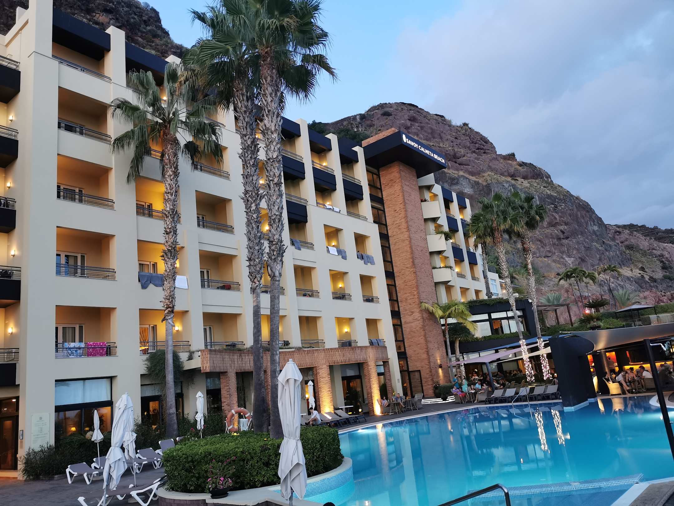 Die Poolanlage am Abend
