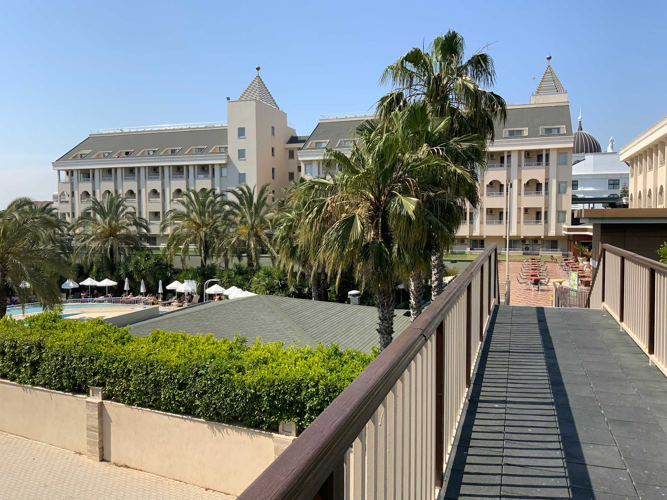 auf der Brücke zum Nebengebäude,das Hauptgebäude im Hintergrund