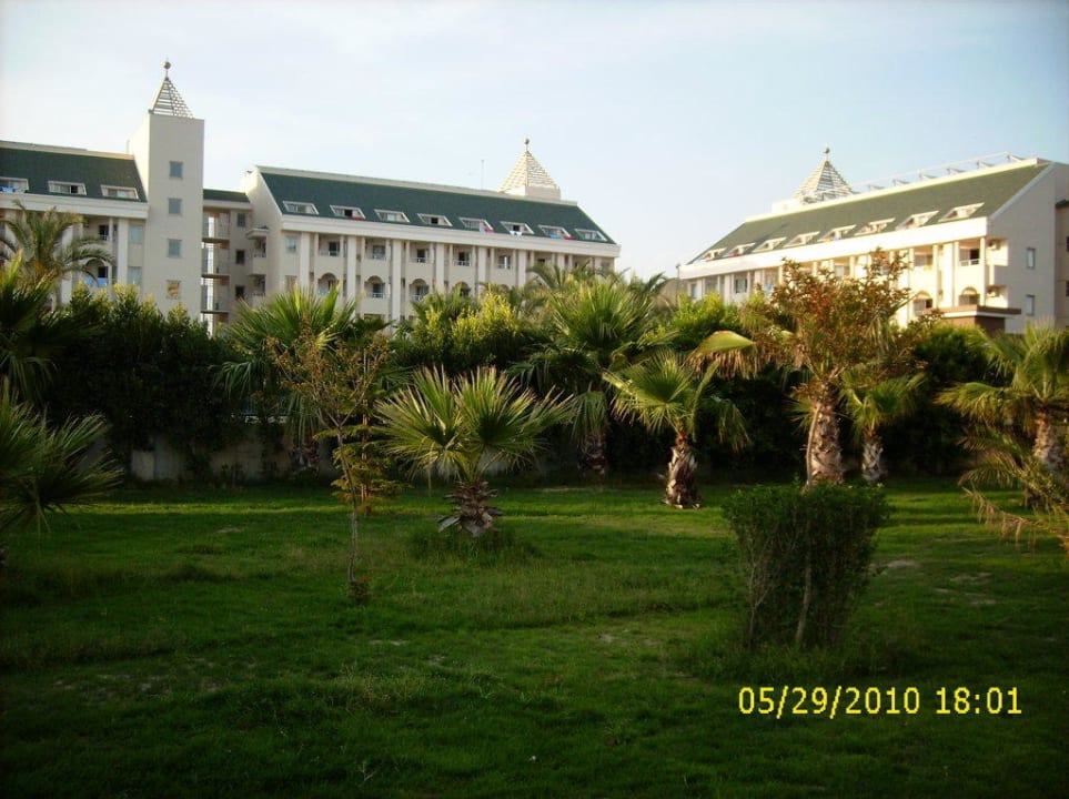 Blick vom Garten und dem Animationspool auf Altbau