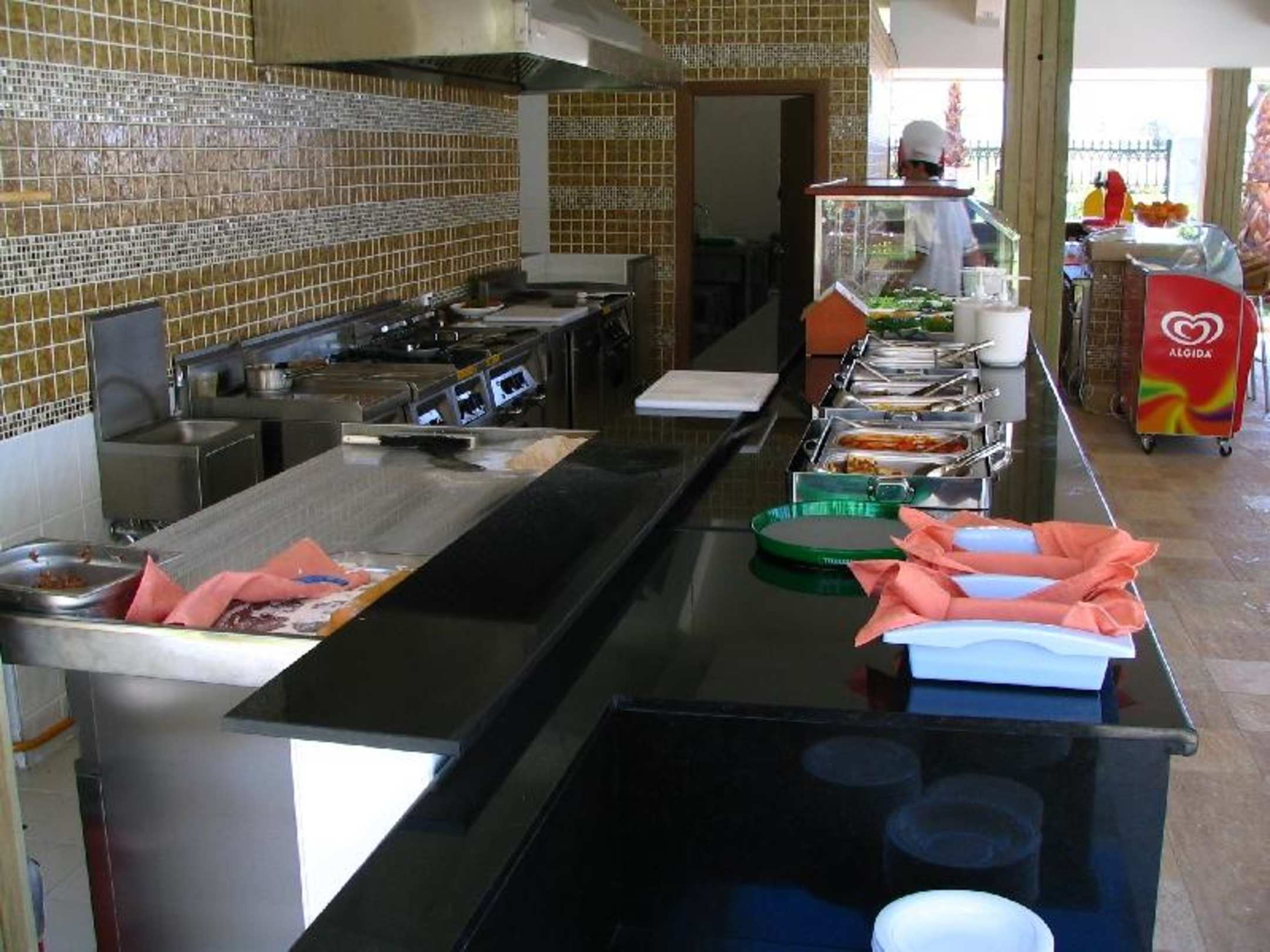 PoolbarAn der Poolbar gab es neben Getränken auch Snacks in der Mittagszeit (Pommes, Salat, Nudeln, Pizza) und Nachmittags Kuchen