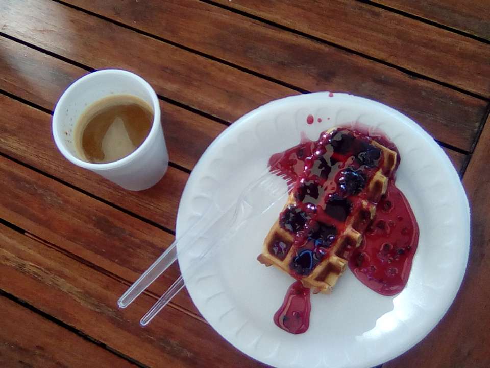 Am Pool Waffel mit Himbeergeschmack