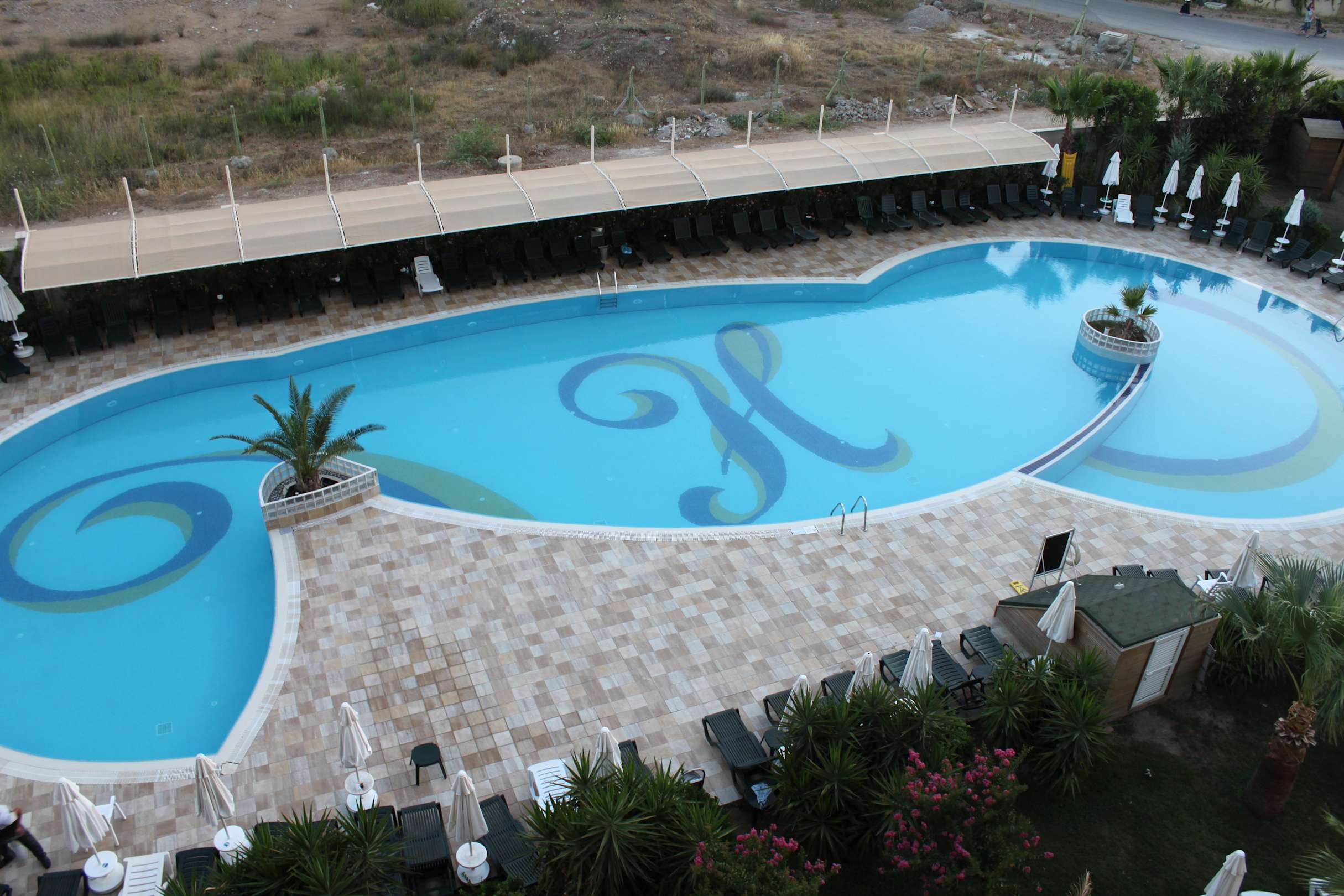 Blick aus dem Zimmer auf den Pool