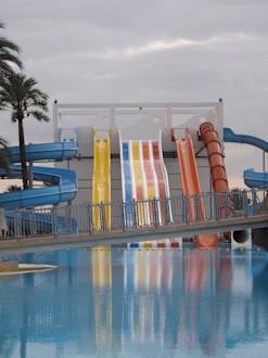 Großer Pool mit mehreren Rutschen