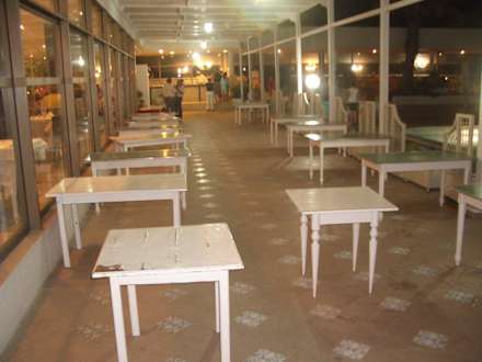 Nach der Rettungsaktion für Besteck und Tischdecken durch die Kellner, die durch das abendliche Gewitter nötig geworden war, kamen auch die nicht so schönen Anblicke im Aussenbereich des Restaurants zum Vorschein