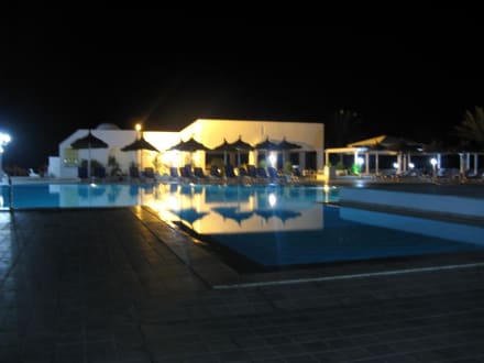 Blick auf Strandcafe und Pool