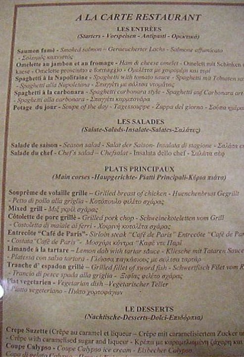 Speisekarte vom A-la-Carte-Restaurant