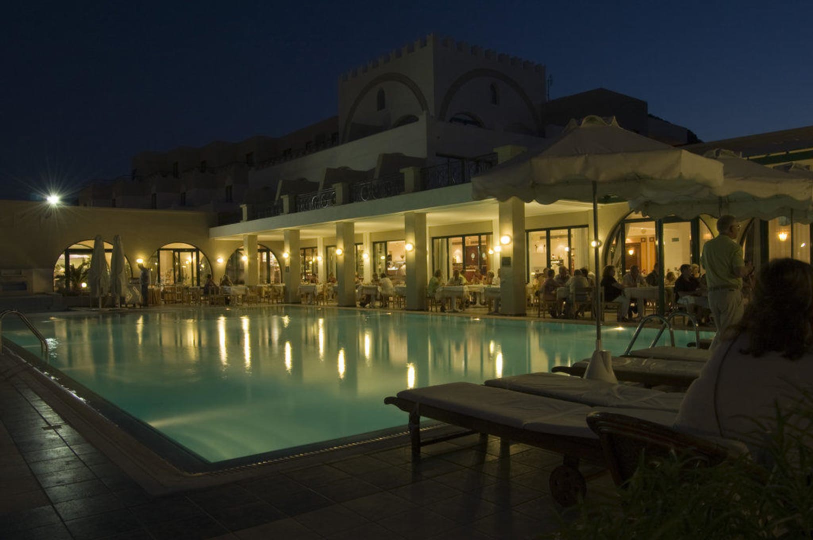 Restaurant am Pool im Abendlicht