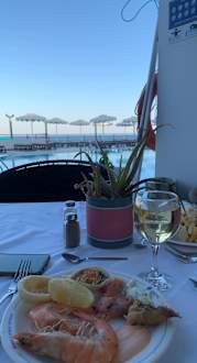 Meeresfrüchte Abendessen mit wunderschöner Aussicht