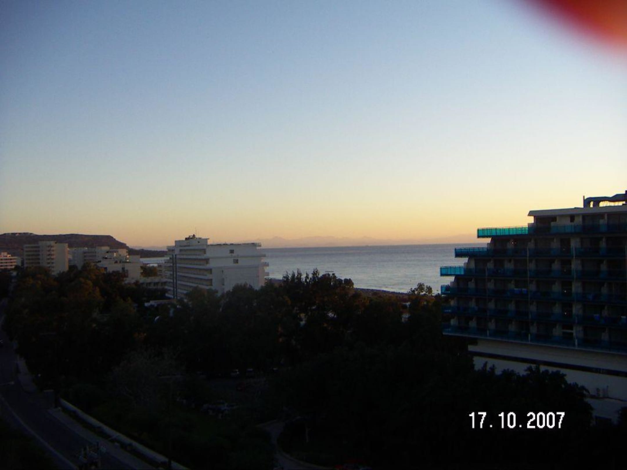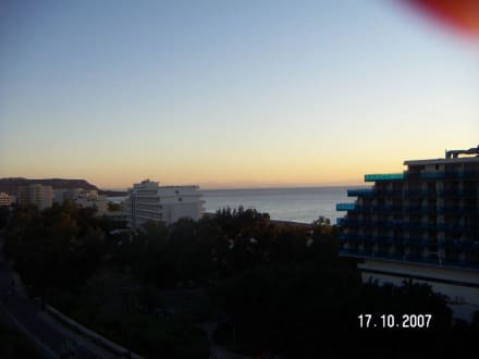 Das ist die Aussicht vom Zimmer. Bei gutem Wetter kann man auf die Türkei schauen.