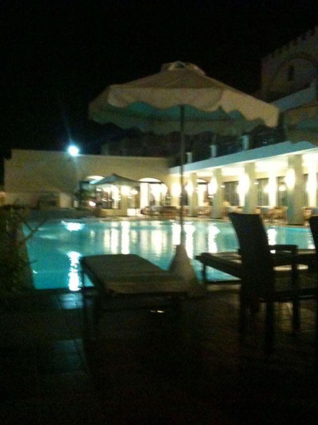 Pool bei Nacht und Terrasse vom Restaurant
