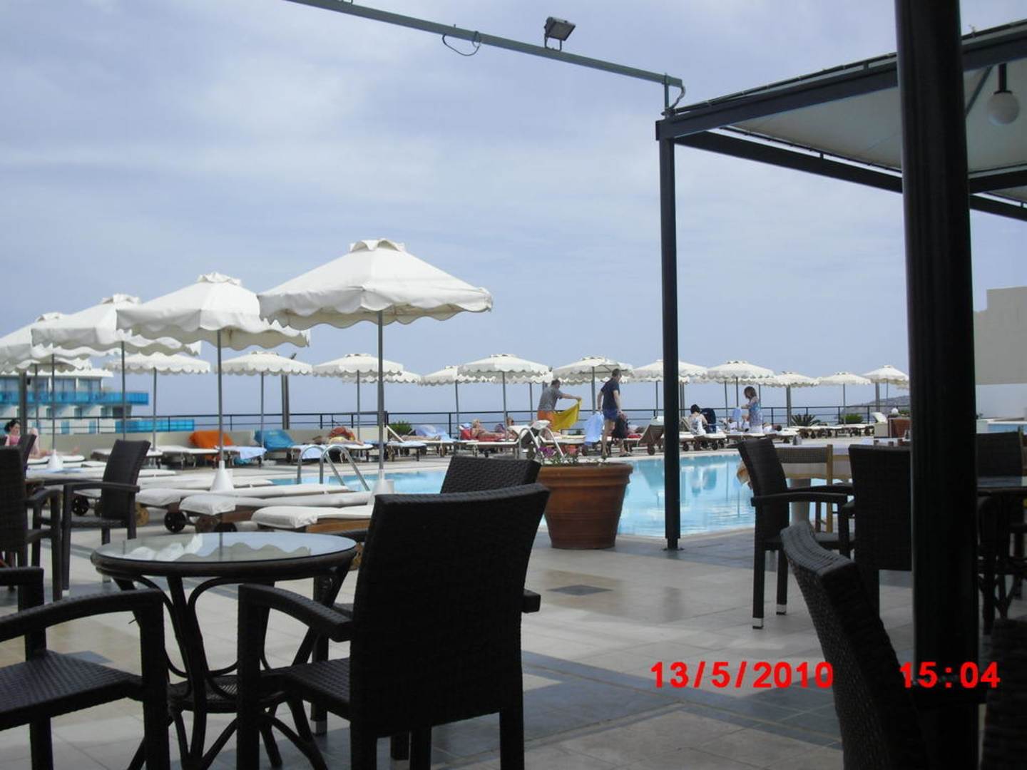 Ausblick von Snackbar auf Pool und Meer