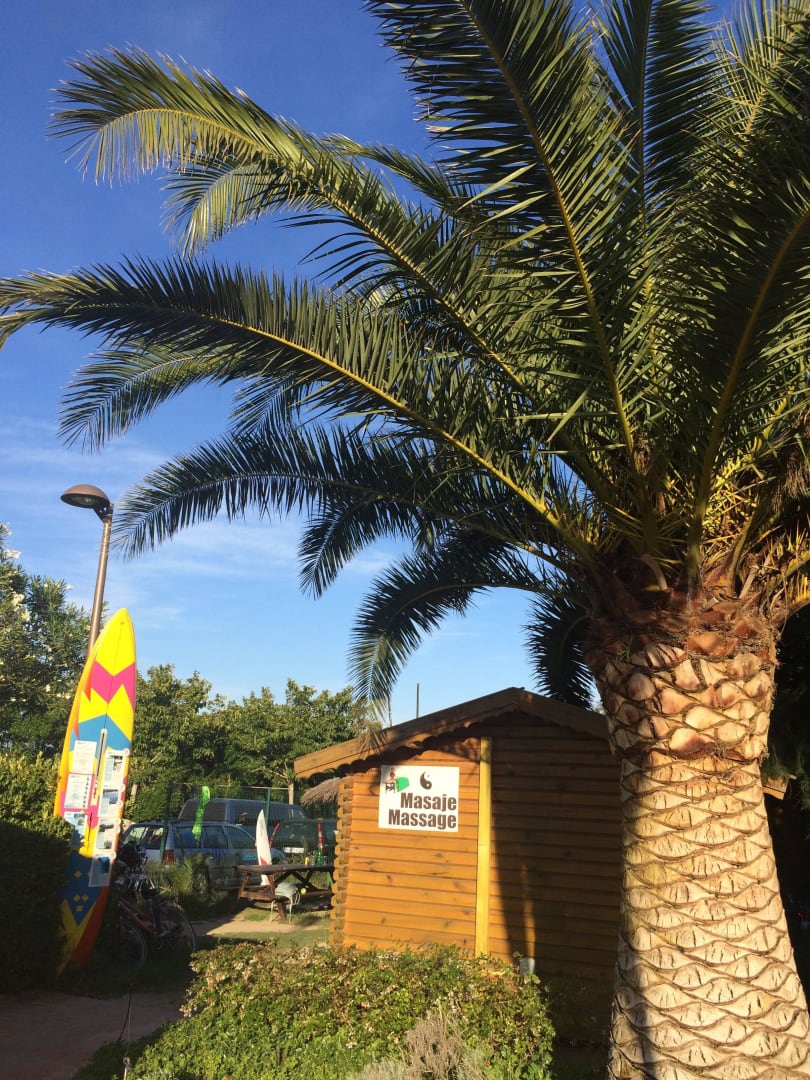 Massage Häuschen direkt am Eingang des Platzes
