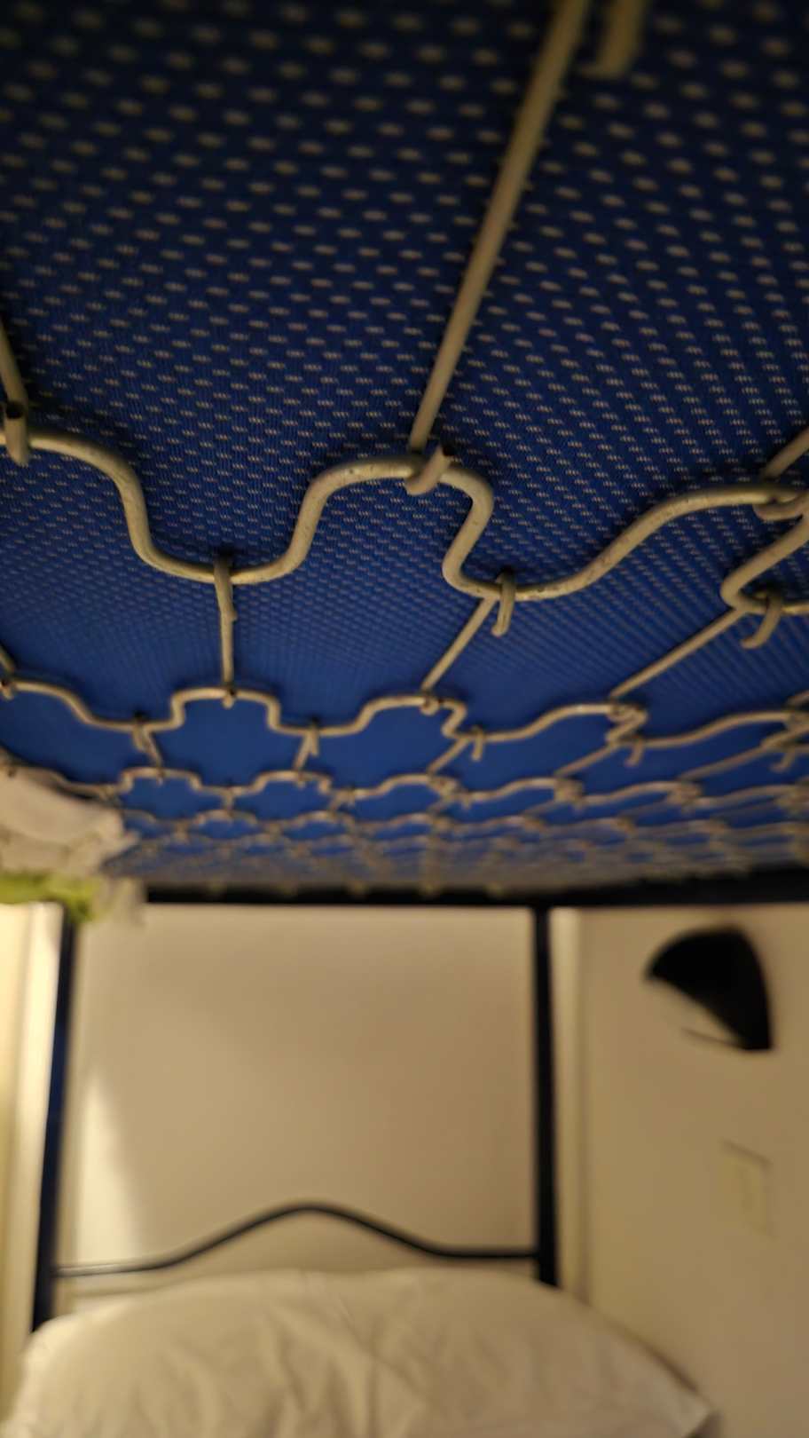 Haare der Enkelin haben sich beim Aufrichten im Gitter des oberen Bettes verfangen.